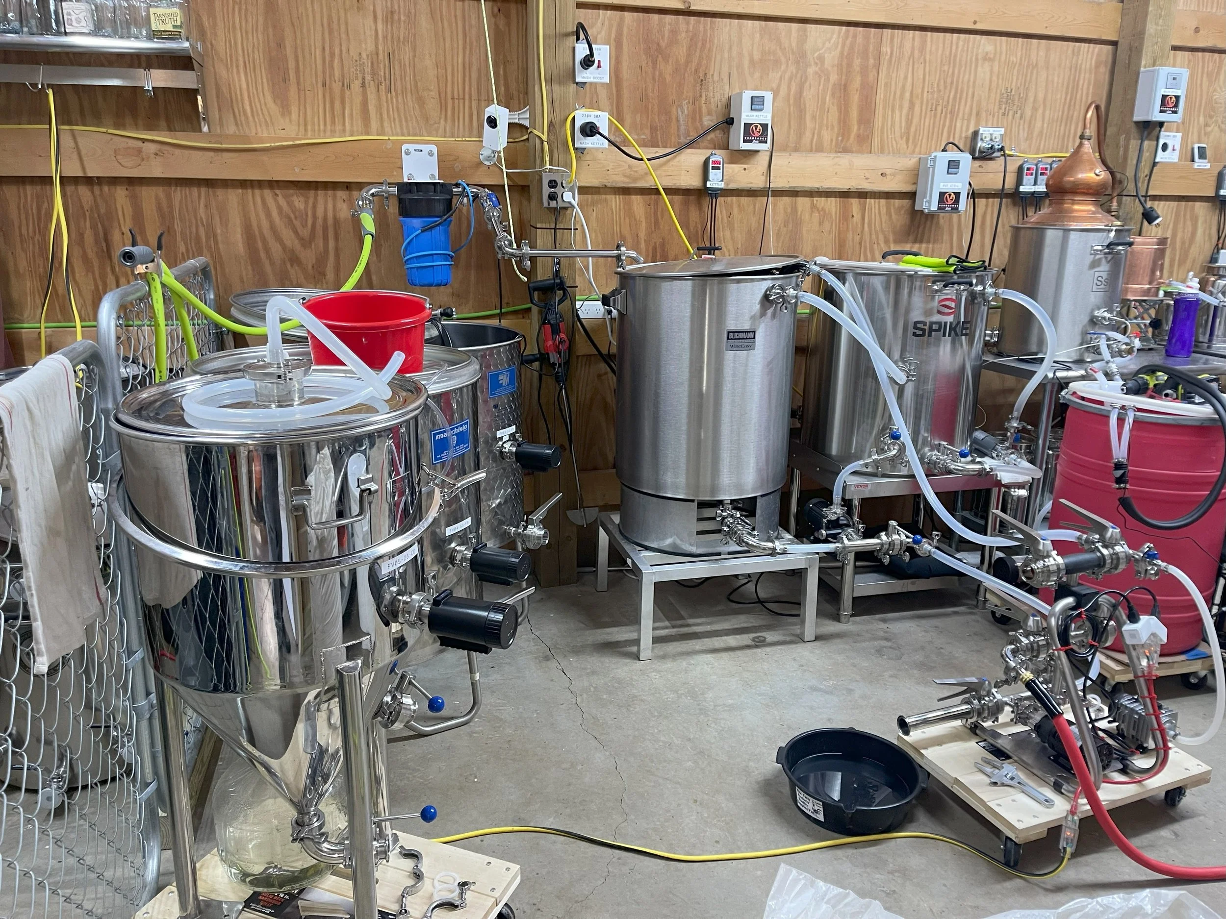Three of our main fermenters are on the left in this picture. The front unit is 26 gallon, and the two behind it are 53 gallon. We also have two 79 gallon fermenters and several smaller units that are reserved for test batches.